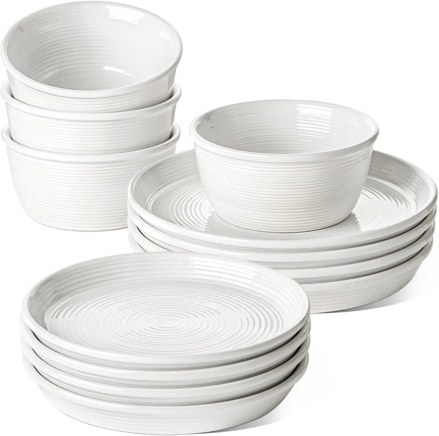 - Complete 12-piece set for four, including four 10" dinner plates, four 8" salad plates, and four 6" bowls. Designed for daily meals, it adapts to family dinners, entertaining guests, and weekday leftovers.