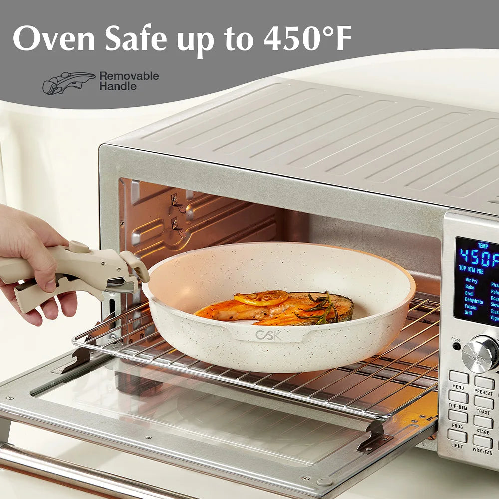 - The nonstick, non-toxic coating lets you cook with less oil, sear and flip with confidence, and wipe the pan clean in moments.
