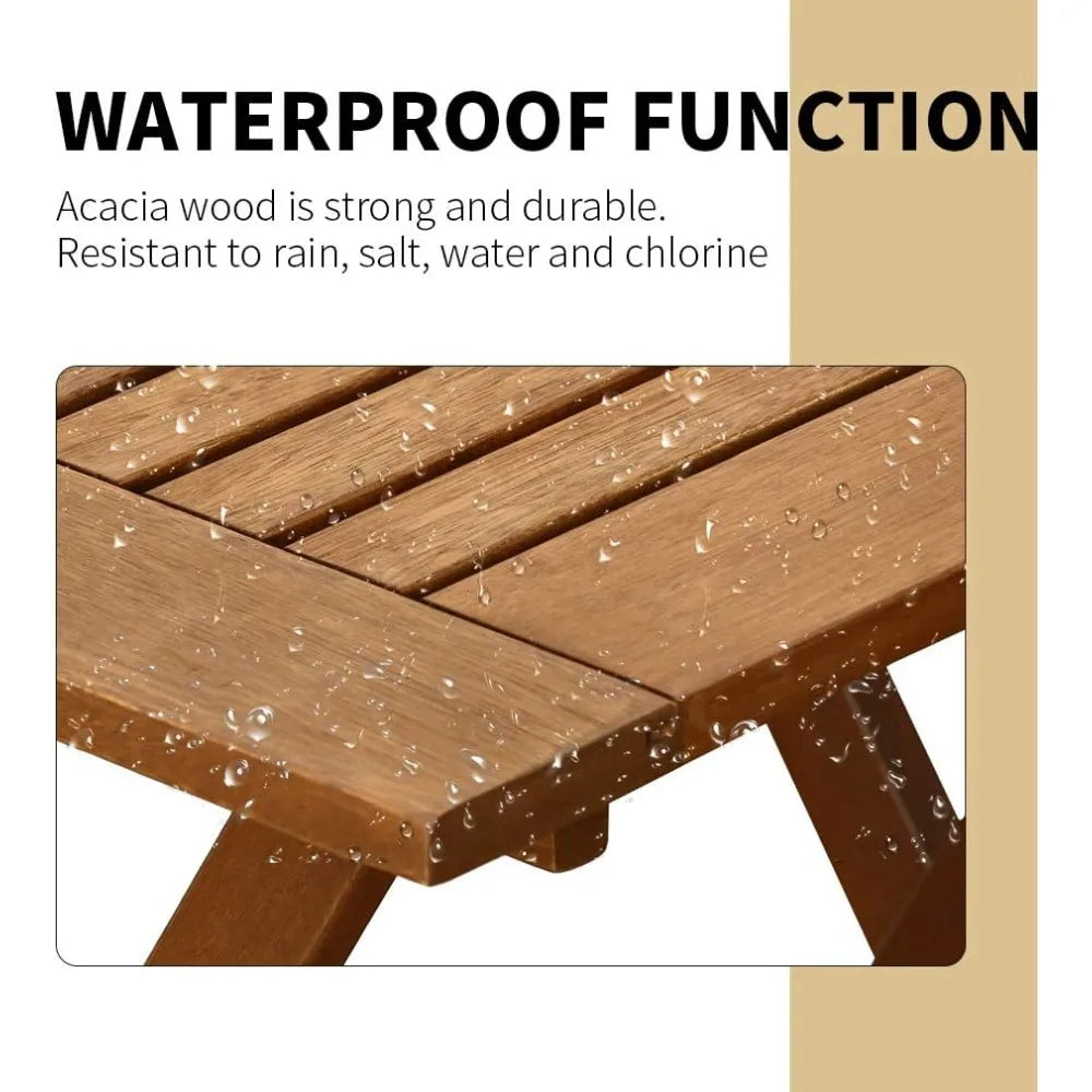 - Built from durable acacia wood with a natural finish that stands up to rain, salt, and chlorine, keeping a smooth, splinter-free surface—and free of harsh chemicals.