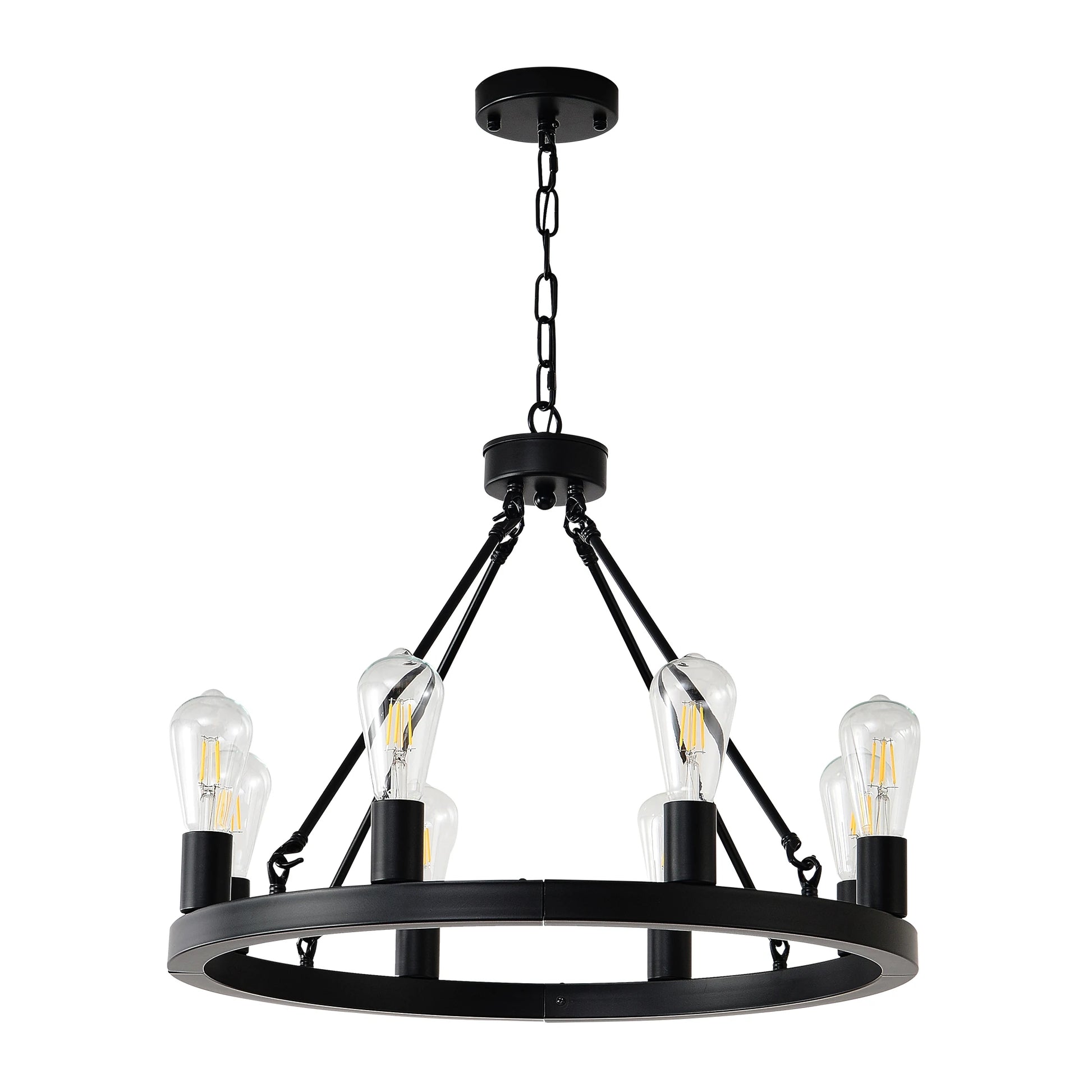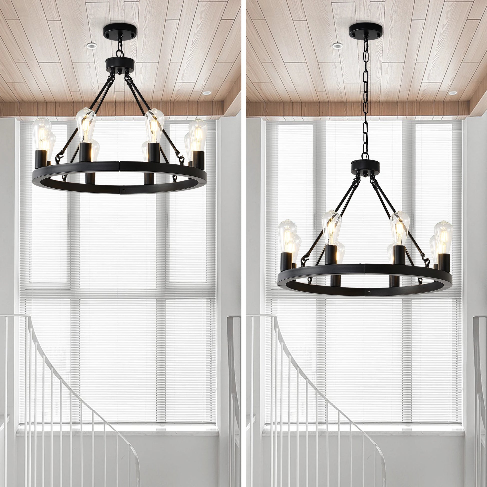 Add timeless farmhouse charm and a warm, modern glow to your space with this six-light wagon wheel chandelier.