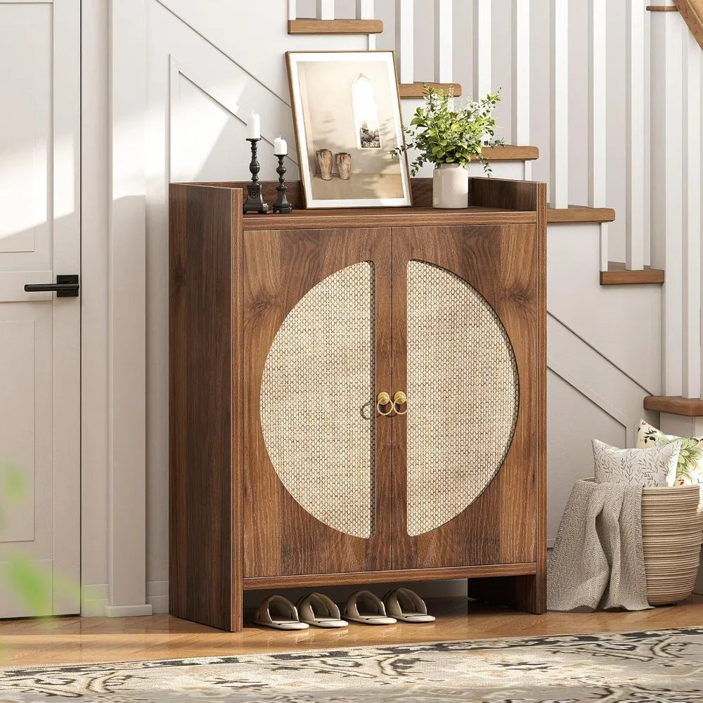 MKDK Shoe Storage Cabinet With Adjustable Shelves Rattan