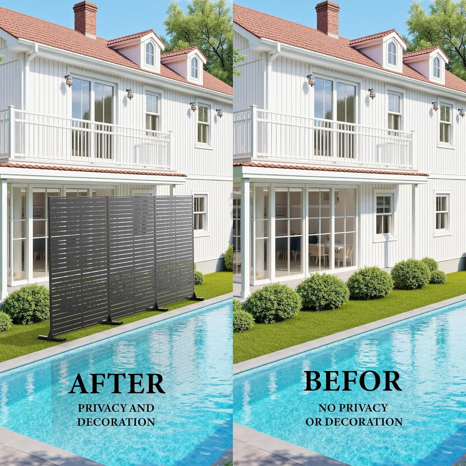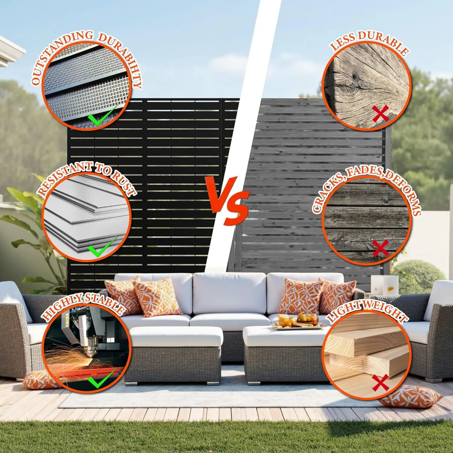 【Solid Structure】Our decorative outdoor privacy screen is constructed of solid steel with protective paint. It will remain strong and stylish, protecting against rust and water damage, ensuring years of reliable use