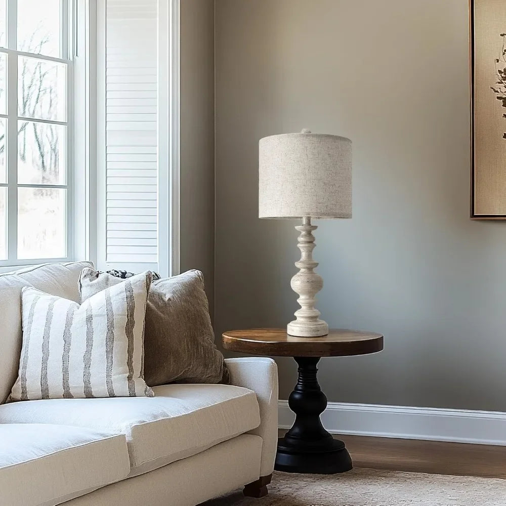 XMSJ Table Lamp Set Rustic Resin Farmhouse Linen Shade