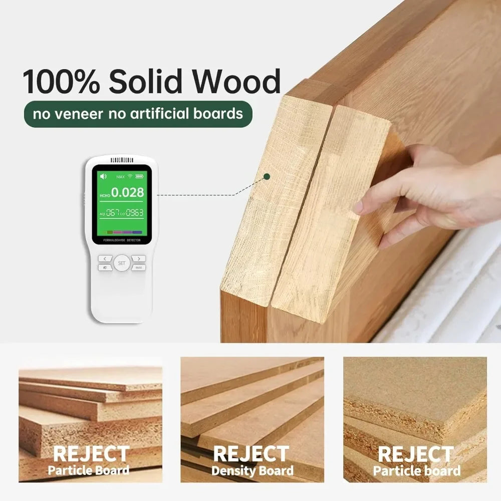 - Eco-friendly solid oak construction with a Walnut finish and minimal glue keeps your space healthy and durable for you.