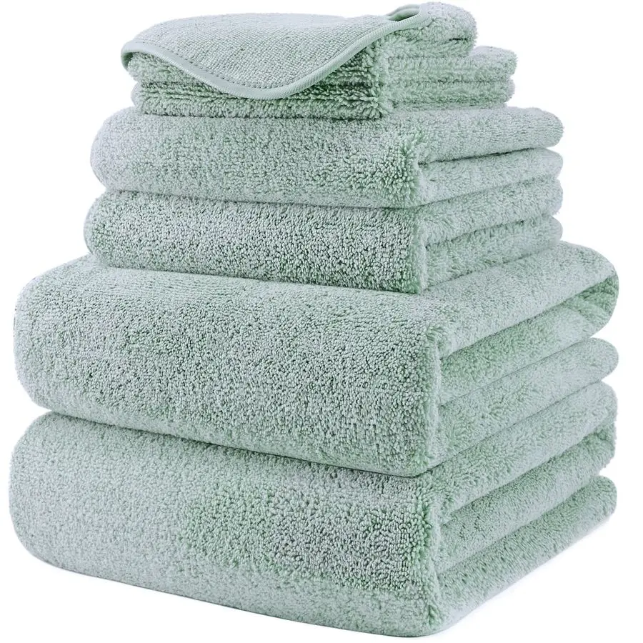Oversize, 60 x 30 in., Quick Dry Lint Free Microfiber Bath Towel Set, 6 Piece Green