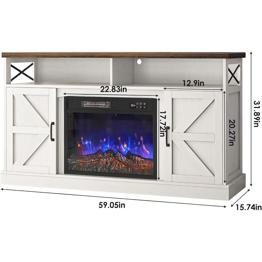 - TV Stand with Fireplace: The fireplace is 23 inches long. Includes manual buttons and remote control. Features 7 colors of wood-simulated flames. Includes 5 levels of brightness adjustment and 5 levels of flame burning speed.